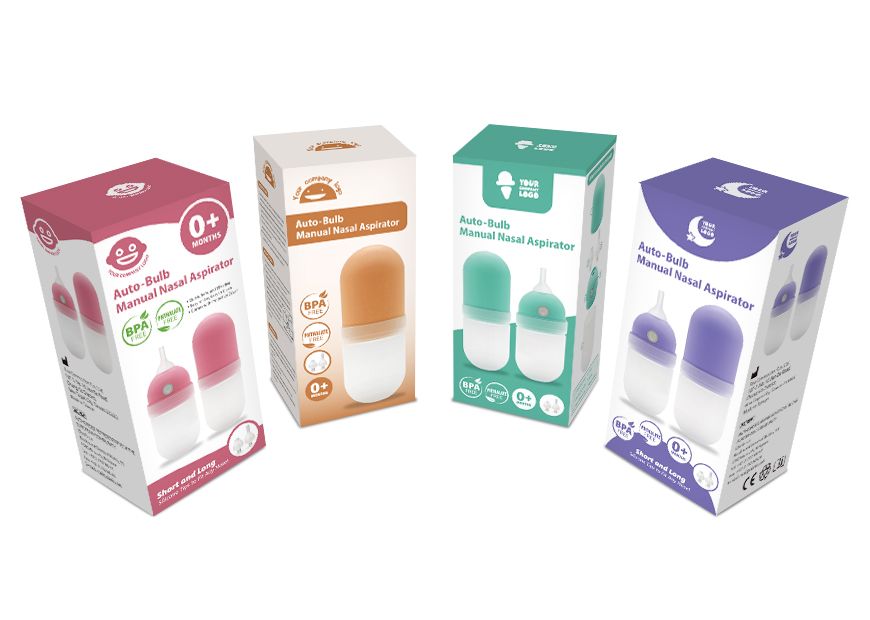 Below are some paper box packaging design options for Auto-Bulb Manual Nasal Aspirator. We also offer various options such as blister packs, plastic storage cases, and more. Private label and custom packaging services are more than welcome. Choose a packaging design that best promotes your brand value and fits your sales channel the best. We will help you launch the product on the market in your brand name and build your brand image.